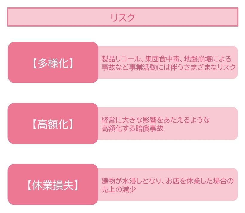企業を様々な事業や経営にかかわるリスクから守る保険です。