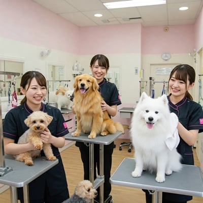 安全な作業環境の整備: トリミング台や器具の安全性の確認とメンテナンス 換気や温度管理の徹底 滑りにくい床材の使用 緊急時の対応マニュアルの作成と訓練の実施 事故発生時の報告体制の確立